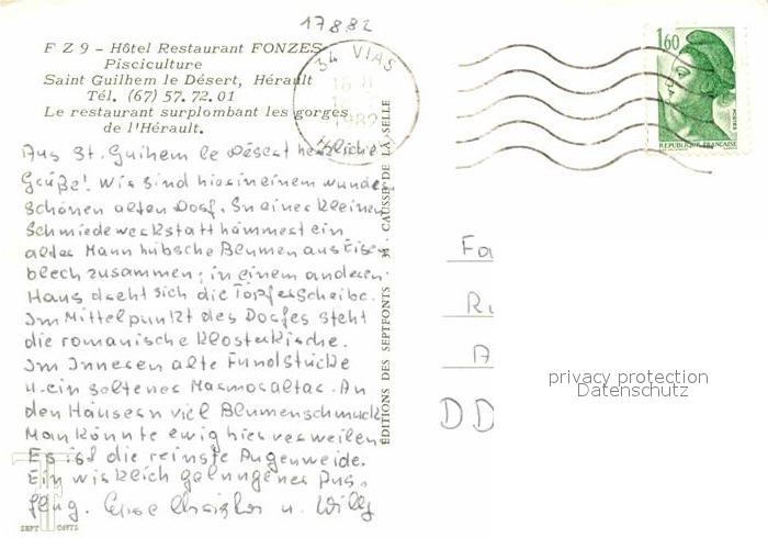 12673253 carte postale Saint-Guilhem-le-Desert Hotel Restaurant Fonzes Pisciculture Fliegeraufnahme postalisch gelaufen Erhaltung siehe scans [WerneD78] KatCode: 11170034334261