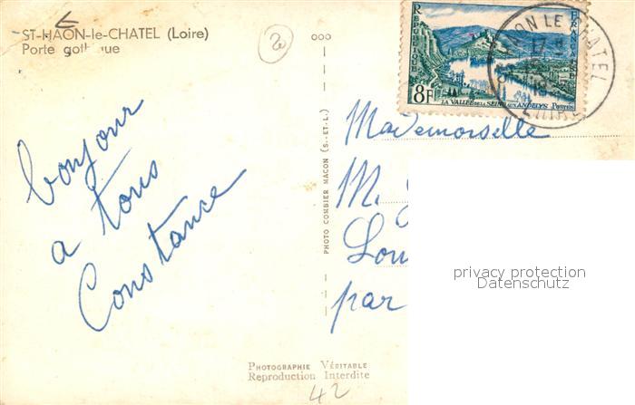13503769 carte postale Saint-Haon-le-Chatel Porte gothique postalisch gelaufen Erhaltung siehe scans [FriedD77] KatCode: 11170042242232