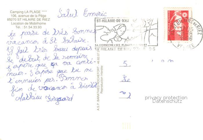 13617866 Saint Hilaire de Riez Camping La Plage Vue aerienne postalisch gelaufen Erhaltung siehe scans [WerneD78] carte postale Wern Katcode 11170085385226
