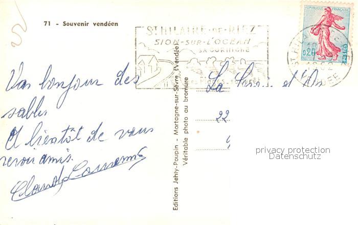 13299461 carte postale Saint Hilaire de Riez postalisch gelaufen Erhaltung siehe scans [PaolaD17] KatCode: 11170085385226