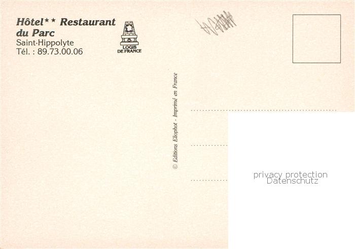 13796163 Saint-Hippolyte 25 Doubs Hotel Restaurant du Parc Gaststube postalisch nicht gelaufen Erhaltung siehe scans [WerneD78] Wern Katcode 11170025225519