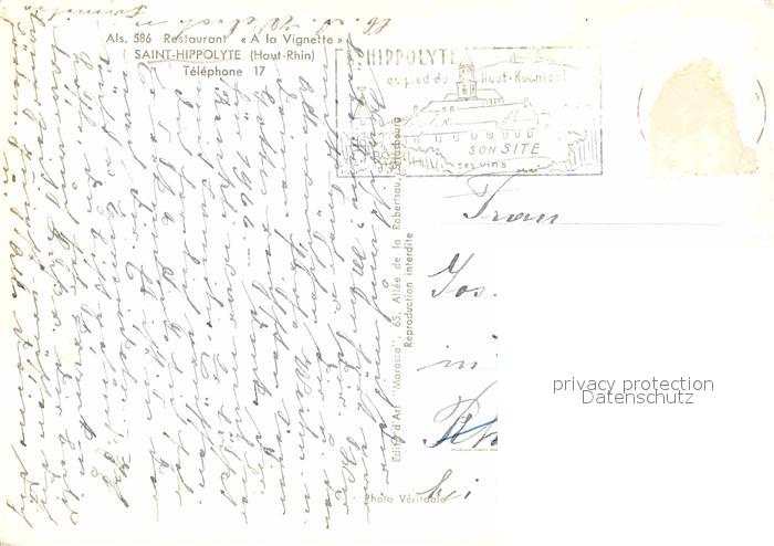 12819374 carte postale Saint-Hippolyte Haut-Rhin Restaurant Vignette postalisch gelaufen Erhaltung siehe scans [KathaD81] KatCode: 11170068568296