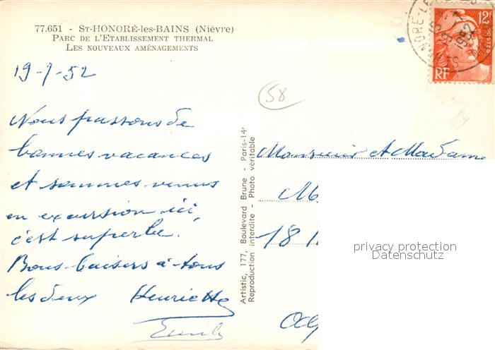 13248708 carte postale Saint-Honore-les-Bains Parc de Etablissement Thermal postalisch gelaufen Erhaltung siehe scans [NatalD47] KatCode: 11170058158246
