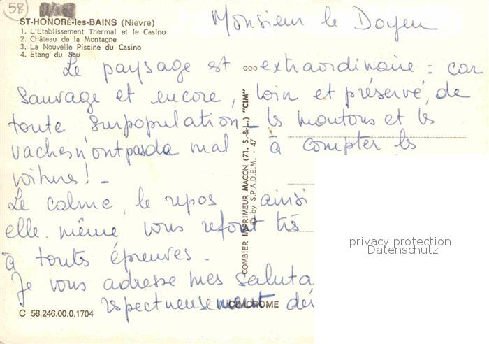 12896074 Saint-Honore-les-Bains Trinkhalle Casino Chàteau Schwimmbad Teich postalisch nicht gelaufen Erhaltung siehe scans [AndreD76] KatCode: 11170058158246