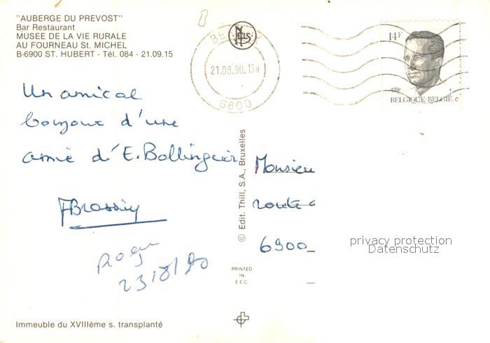 73518150 carte postale Saint-Hubert Liege Auberge du Prevost Bar Restaurant Musee de la vie rurale postalisch gelaufen Erhaltung siehe scans [KathaD81] KatCode: 11070084009634