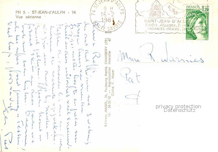 12863506 carte postale Saint Jean d Aulph Fliegeraufnahme postalisch gelaufen Erhaltung siehe scans [NatalD47] KatCode: 11170074474238
