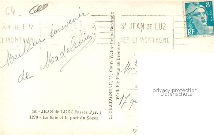 13545322 carte postale Saint-Jean-de-Luz Baie port du Socoa Fliegeraufnahme postalisch gelaufen Erhaltung siehe scans [KathaD81] KatCode: 11170064164483