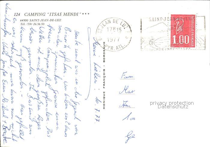 12016477 carte postale Saint-Jean-de-Luz Fliegeraufnahme Camping Itsas Mendi postalisch gelaufen Erhaltung siehe scans KatCode: 11170064164483