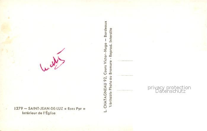 13536529 Saint-Jean-de-Luz Intérieur de l’Eglise postalisch nicht gelaufen Erhaltung siehe scans [FriedD77] KatCode: 11170064164483