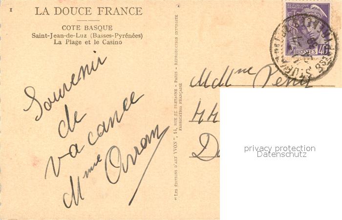 13513830 carte postale Saint-Jean-de-Luz La plage et le casino Kuenstlerkarte postalisch gelaufen Erhaltung siehe scans [FriedD77] KatCode: 11170064164483