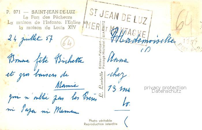 13573768 carte postale Saint-Jean-de-Luz Le Port des Pecheurs La maison de l’Infante l’Eglise la maison des Louis XIV postalisch gelaufen Erhaltung siehe scans [WerneD78] KatCode: 11170064164483
