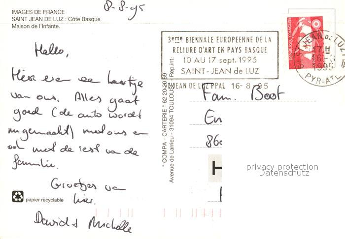 13060981 carte postale Saint-Jean-de-Luz Maison de l’Infante postalisch gelaufen Erhaltung siehe scans [FriedD77] KatCode: 11170064164483