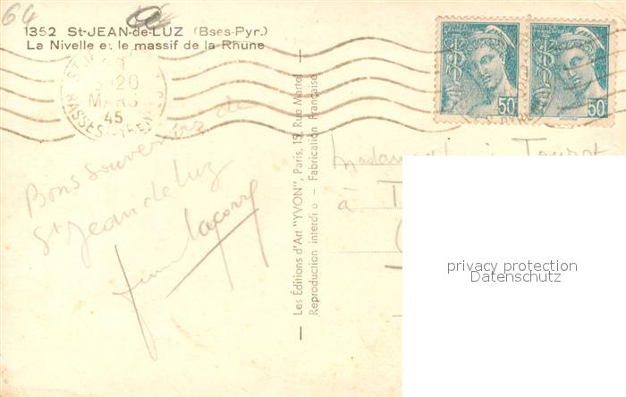 13545320 carte postale Saint-Jean-de-Luz Nivelle massif Rhune postalisch gelaufen Erhaltung siehe scans [KathaD81] KatCode: 11170064164483