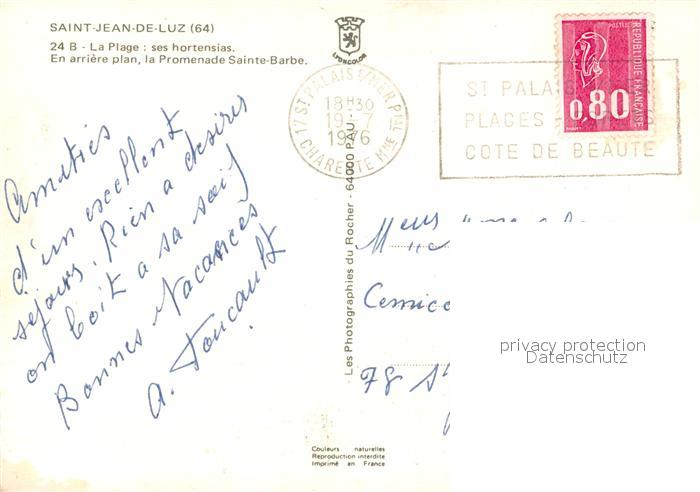 13585683 Saint-Jean-de-Luz Plage Hortensias Promenade Sainte-Barbe postalisch gelaufen Erhaltung siehe scans [PaolaD17] carte postale Paol Katcode 11170064164483
