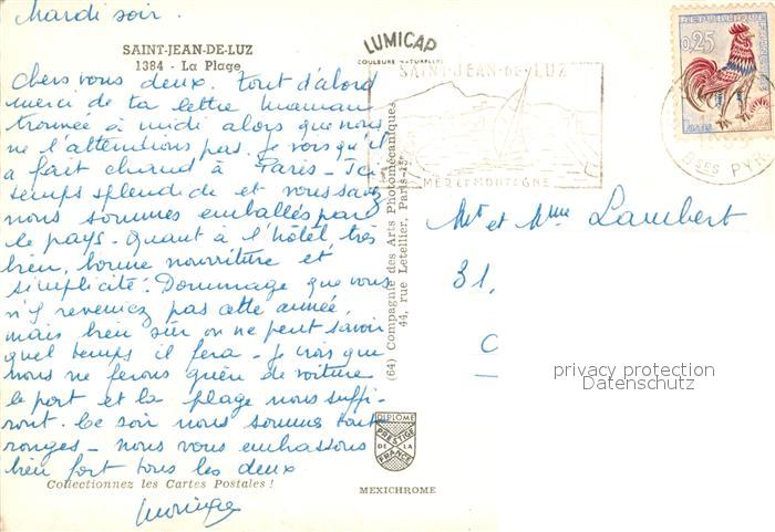 13585711 Saint-Jean-de-Luz Plage postalisch gelaufen Erhaltung siehe scans [PaolaD17] carte postale Paol Katcode 11170064164483