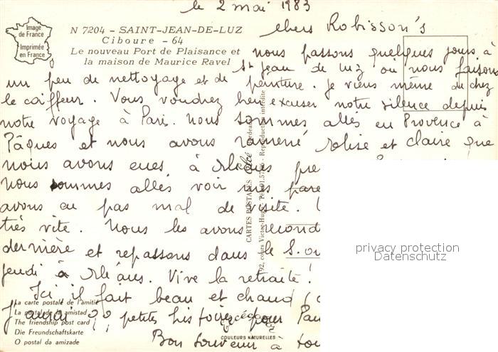 13585680 Saint-Jean-de-Luz Port de Plaisance Maison de Maurice Ravel postalisch nicht gelaufen Erhaltung siehe scans [PaolaD17] Paol Katcode 11170064164483