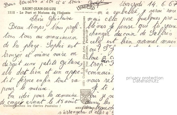 13585664 Saint-Jean-de-Luz Port Maison de l’Infante postalisch nicht gelaufen Erhaltung siehe scans [PaolaD17] Paol Katcode 11170064164483