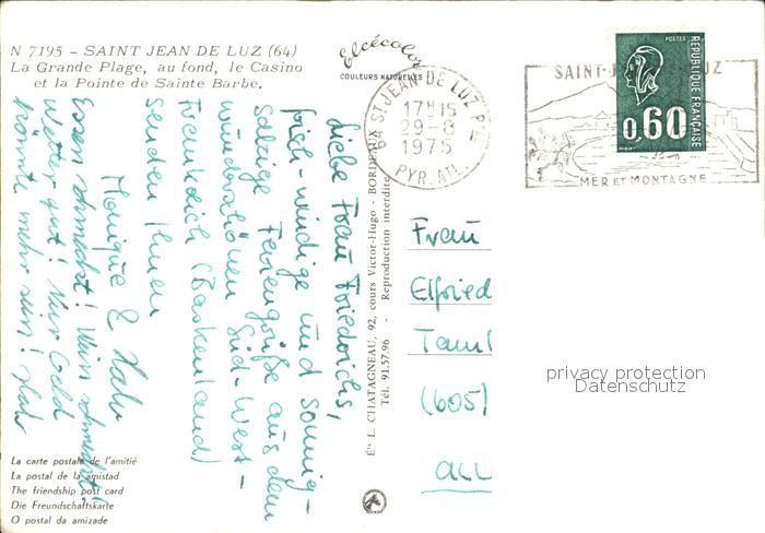 12432640 carte postale Saint-Jean-de-Luz Strand postalisch gelaufen Erhaltung siehe scans KatCode: 11170064164483