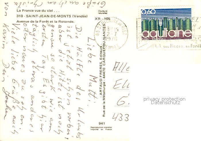 13356277 carte postale Saint Jean de Monts Avenue de la Foret et la Rotonde Vue aerienne postalisch gelaufen Erhaltung siehe scans [WerneD78] KatCode: 11170085385234