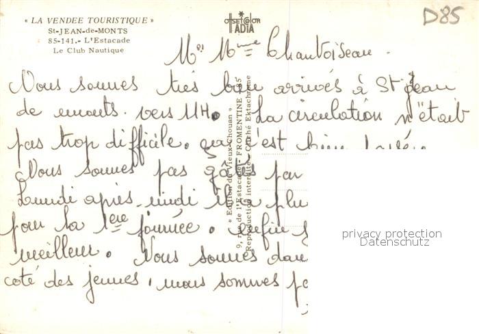 Saint Jean de Monts Club Nautique Plage postalisch nicht gelaufen Erhaltung siehe scans [FriedD77]