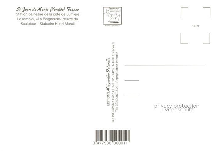 13606615 Saint Jean de Monts Dauphin La Baigneuse Statuaire Henri Murail Plage Feu d artifice postalisch nicht gelaufen Erhaltung siehe scans [FriedD77] KatCode: 11170085385234