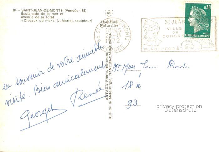 13617882 Saint Jean de Monts Esplande de la mer et avenue de la foret Oiseaux de mer postalisch gelaufen Erhaltung siehe scans [WerneD78] carte postale Wern Katcode 11170085385234