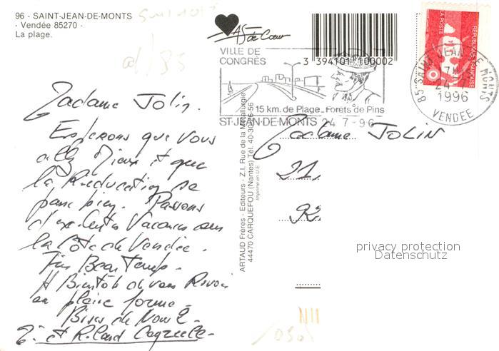 13526222 carte postale Saint Jean de Monts La plage postalisch gelaufen Erhaltung siehe scans [FriedD77] KatCode: 11170085385234