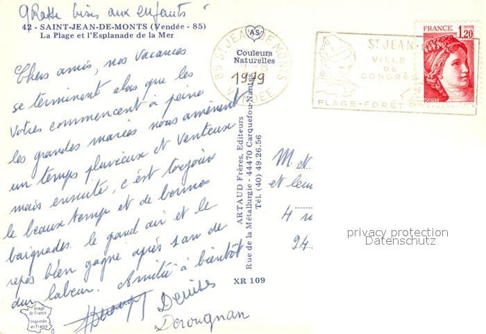 carte postale Saint Jean de Monts La Plage et l’Esplanade de la Mer postalisch gelaufen Erhaltung siehe scans [WerneD78]