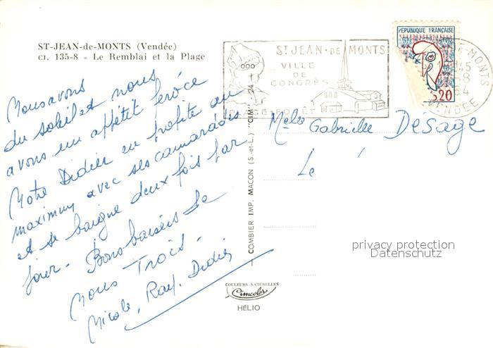 13590193 Saint Jean de Monts Le Remblai et la Plage postalisch gelaufen Erhaltung siehe scans [WerneD78] carte postale Wern Katcode 11170085385234