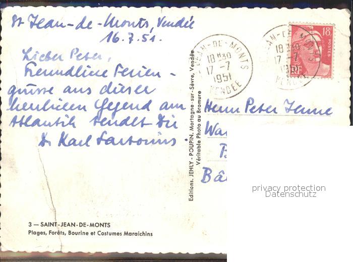 11940623 carte postale Saint-Jean-de-Monts Strand Tracht postalisch gelaufen Erhaltung siehe scans KatCode: 11170085385234