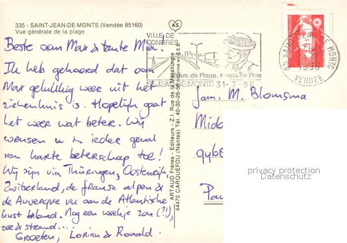 13743537 Saint Jean de Monts Vue aérienne de la plage postalisch gelaufen Erhaltung siehe scans [FriedD77] carte postale Frie Katcode 11170085385234