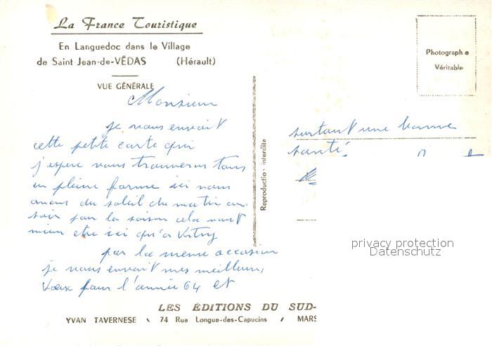 13586662 Saint-Jean-de-Vedas En Languedoc dans le Village postalisch nicht gelaufen Erhaltung siehe scans [WerneD78] Wern Katcode 11170034334270