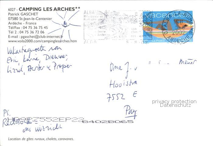 12455837 carte postale Saint-Jean-le-Centenier Camping Les Arches postalisch gelaufen Erhaltung siehe scans KatCode: 11170007107247