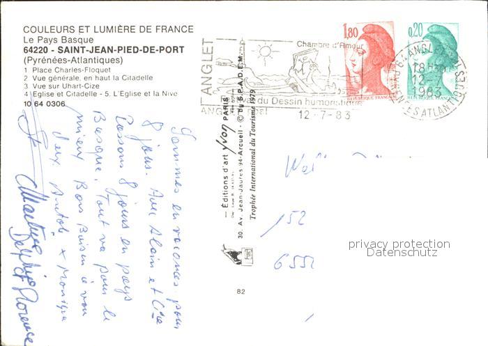 12293276 carte postale Saint-Jean-Pied-de-Port Place Charles Floquet Uhart-Cize postalisch gelaufen Erhaltung siehe scans KatCode: 11170064164485