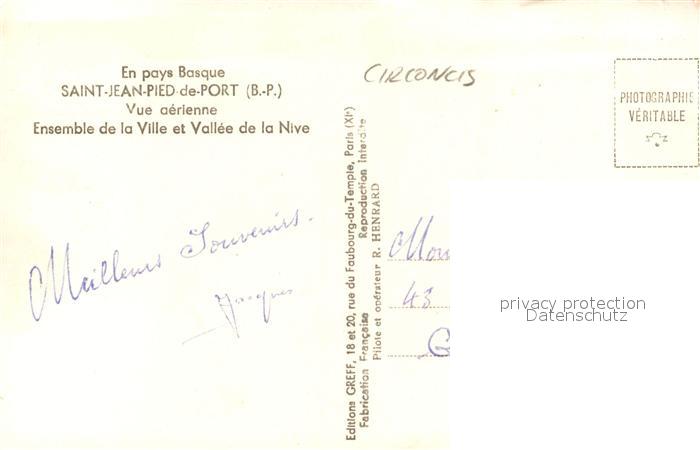 13585715 Saint-Jean-Pied-de-Port Vue aerienne Vallee de la Nive postalisch nicht gelaufen Erhaltung siehe scans [PaolaD17] Paol Katcode 11170064164485