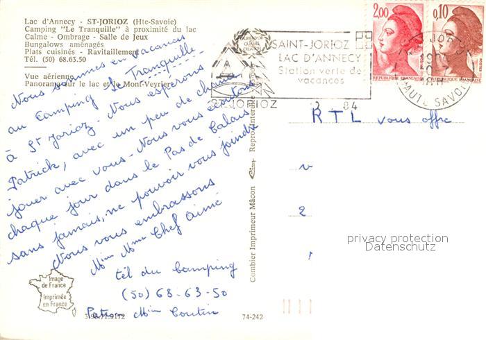 13160516 Saint-Jorioz Fliegeraufnahme Camping Le Tranquille KatCode 11170074174242