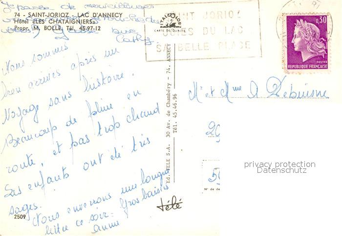 13160511 carte postale Saint-Jorioz Hotel les Chataigniers postalisch gelaufen Erhaltung siehe scans [LiesaD40] KatCode: 11170074174242