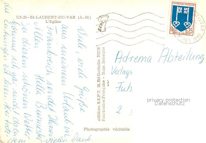 13246257 carte postale Saint-Laurent-du-Var Eglise postalisch gelaufen Erhaltung siehe scans [FriedD77] KatCode: 11170006106123