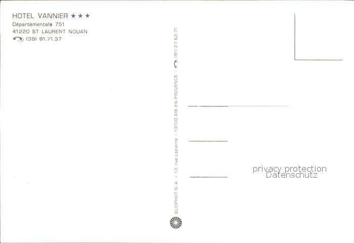 11907211 Saint-Laurent-Nouan Hotel Vannier postalisch nicht gelaufen Erhaltung siehe scans KatCode: 11170041141220