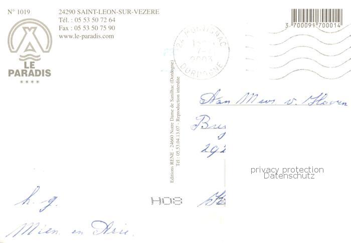 13837668 Saint-Leon-sur-Vezere Camping Le Paradis Pools Spielplatz Restaurant postalisch gelaufen Erhaltung siehe scans [FriedD77] carte postale Frie Katcode 11170024424443