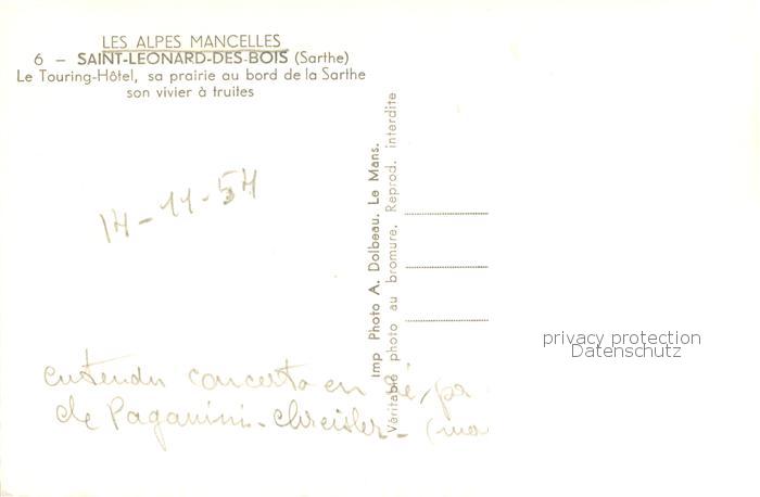 13772197 Saint-Leonard-des-Bois Le Touring Hotel sa prairie au bord de la Sarthe son vievier a truiles postalisch nicht gelaufen Erhaltung siehe scans [FriedD77] Frie Katcode 11170072272294