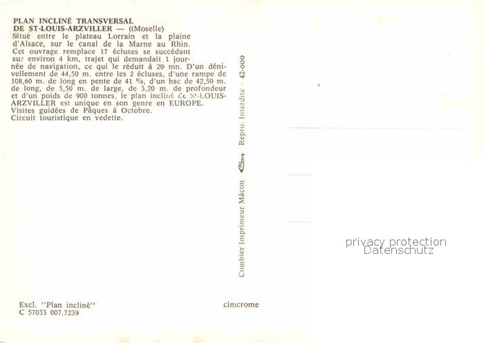 12832374 Saint Louis Arzviller Plan Incline Transversal postalisch nicht gelaufen Erhaltung siehe scans [NatalD47] KatCode: 11170057557033
