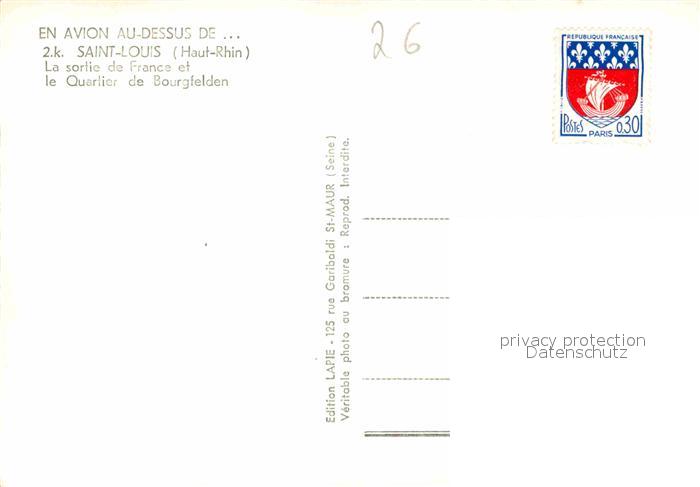 12664916 Saint-Louis Elsass Fliegeraufnahme postalisch nicht gelaufen Erhaltung siehe scans [LiesaD40] KatCode: 11170068468297