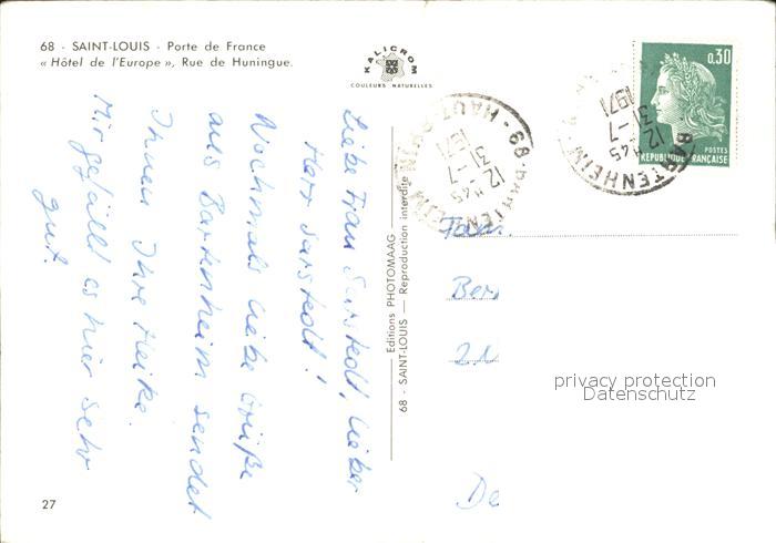 12254211 carte postale Saint-Louis Elsass Hotel de l’Europe Rue de Huningue Porte de France postalisch gelaufen Erhaltung siehe scans KatCode: 11170068468297