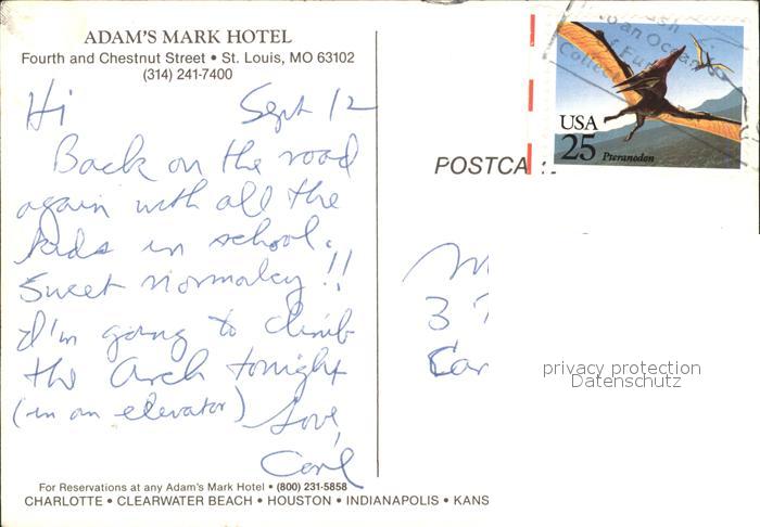 71859646 old postcard Saint Louis Missouri Adams Mark Hotel postalisch gelaufen Erhaltung siehe scans KatCode: 14140