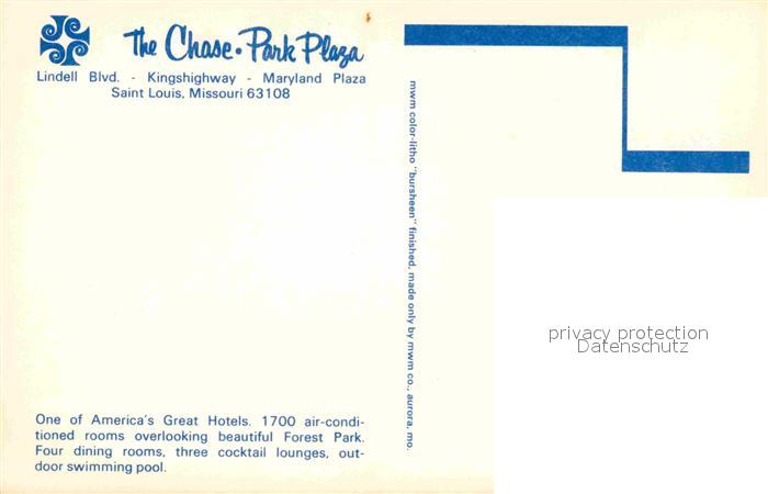 72876358 Saint Louis Missouri The Chase Park Plaza postalisch nicht gelaufen Erhaltung siehe scans [AndreD76] KatCode: 14140