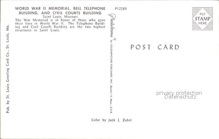 72285148 Saint Louis Missouri World War Memorial Bell Telephone Building postalisch nicht gelaufen Erhaltung siehe scans KatCode: 14140