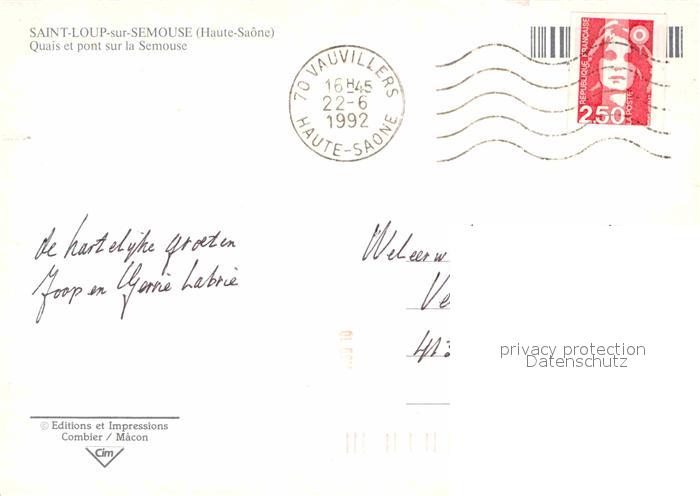 12903687 carte postale Saint-Loup-sur-Semouse Quais et pont sur la Semouse postalisch gelaufen Erhaltung siehe scans [FriedD77] KatCode: 11170070170467