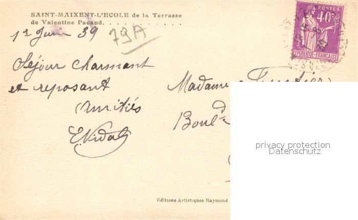 13630967 Saint-Maixent-l Ecole Vue de la Terrasse de Valentine Pacaud postalisch gelaufen Erhaltung siehe scans [FriedD77] carte postale Frie Katcode 11170079279270