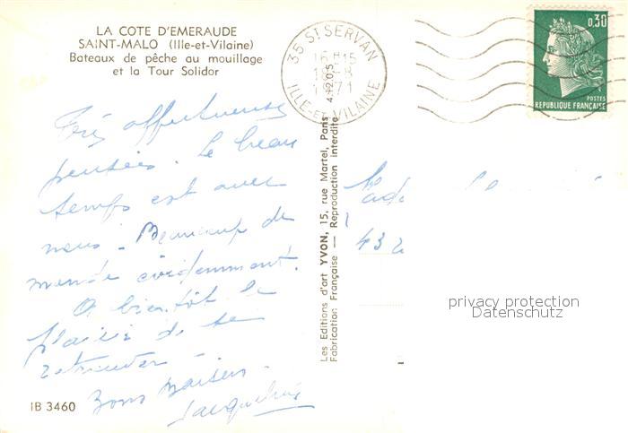 13579124 carte postale Saint-Malo 35 Bateaux de pêche au mouillage et la Tour Solidor postalisch gelaufen Erhaltung siehe scans [FriedD77] KatCode: 11170035435288